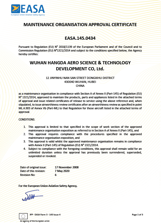 我們擁有CAAC、FAA、EASA以及多國和地區的維修資格證書